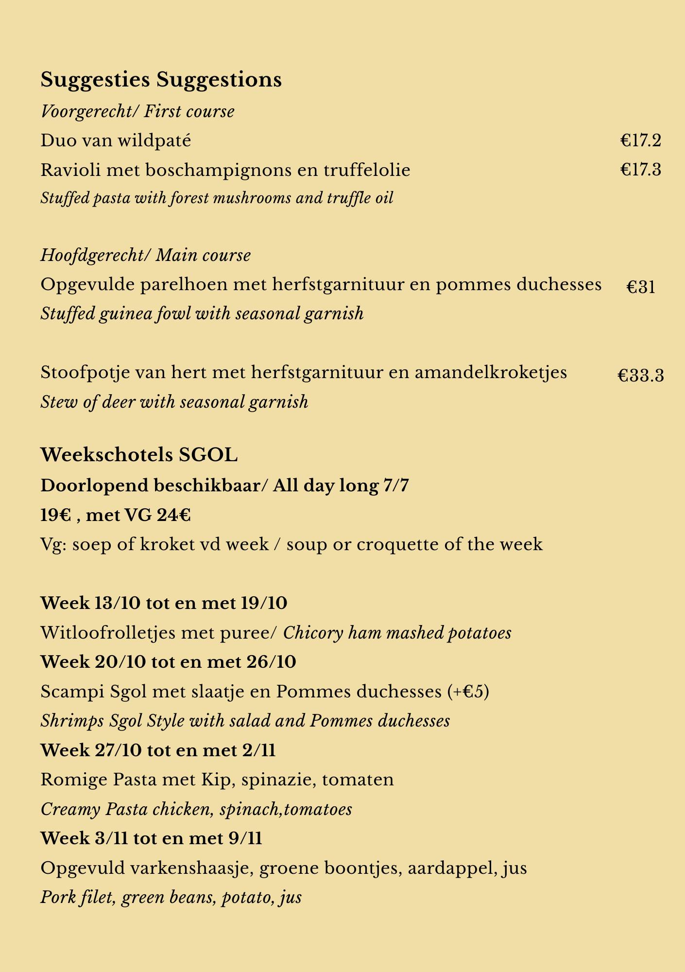 Menu enkel mogelijk op reservatie